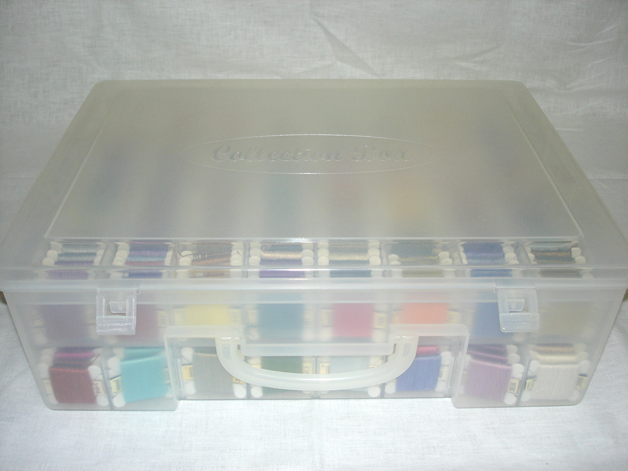 I store my DMC floss in a two tier craft box. Lucky for me, it's big enough to fit my entire set of DMC in.