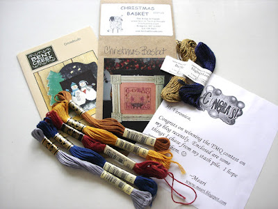 A couple of Christmas charts, DMC thread and Vikki Clayton's yummy silk perle. I like! Thank you so much again, Meari.